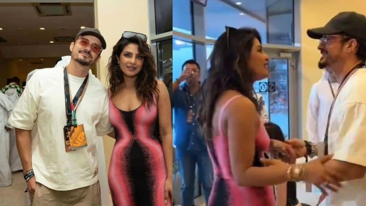 Priyanka Chopra was captured posing with and greeting a host of celebs, including actor Orlando Bloom at the F1 Grand Prix at Yas Marina Circuit in Abu Dhabi.