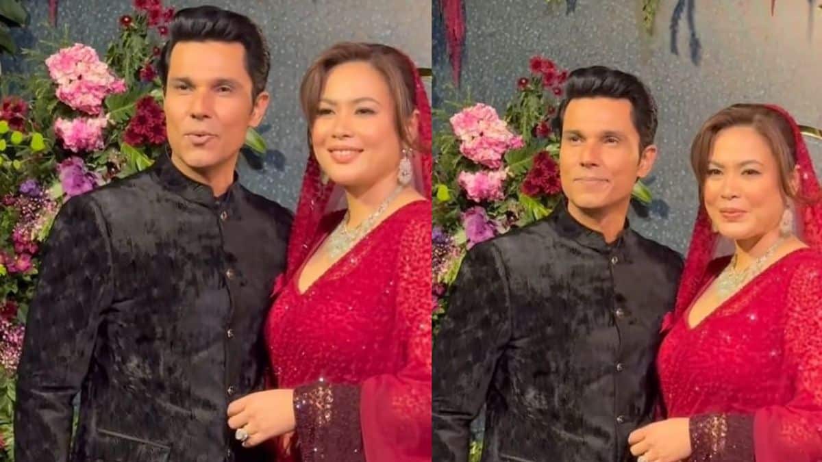 Celebrity couple Randeep Hooda and Lin Laishram graced their wedding reception in Mumbai today. The duo exchanged their vows in a traditional ceremony held in Imphal, Manipur, surrounded by the warmth of their loved ones.
