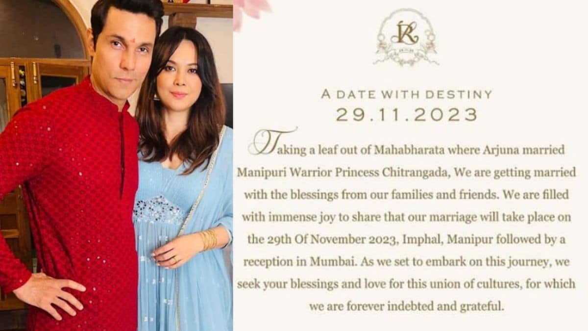 Bollywood actor Randeep Hooda has been hitting the headlines for his upcoming wedding. Now, the actor has himself released a statement, announcing his wedding date. He revealed that he will get married in Imphal, Manipur, followed by a reception in Mumbai. He took to his Instagram handle and shared a note. In his caption, he wrote, “We Have Exciting News.” The note read, “A DATE WITH DESTINY 29.11.2023 Taking a leaf out of Mahabharata where Arjuna married Manipuri Warrior Princess Chitrangada, We are getting married with the blessings from our families and friends.”