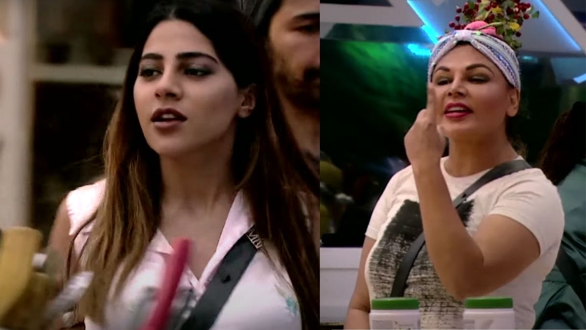 Bigg Boss makers just shared a short 10 seconds promo on their official twitter page. The promo showed a heated argument between Rakhi Sawant and Nikki Tamboli. In the video Nikki is seen threatening Rakhi of slapping her. Moreover, her vulgar and disrespectful comments seem to have fumed Rakhi too. Rakhi replies ‘Show your guts by even touching me’ In no time the heated argument turned into a dirty cat fight. Arshi and Abhinav were seen restraining both Rakhi and Nikki.