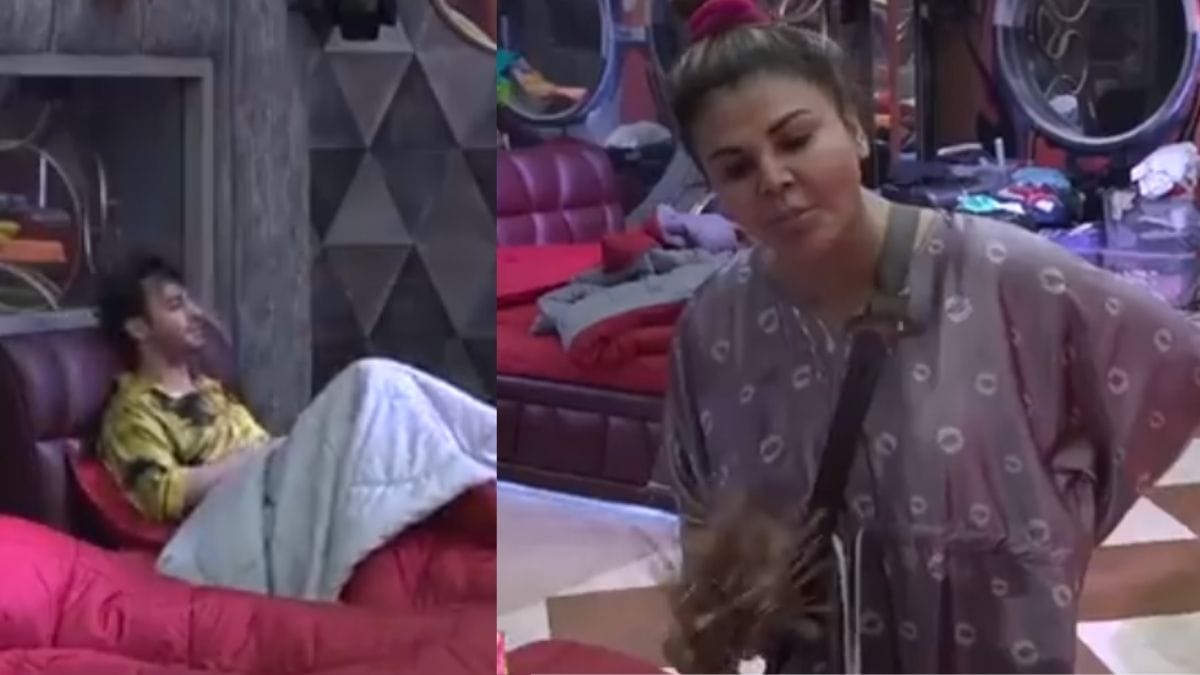 She then hits Umar Riaz with the broom and orders him to wake up as he was sleeping past his bedtime. However, before taking off the sheets Rakhi asks if he is wearing anything underneath.