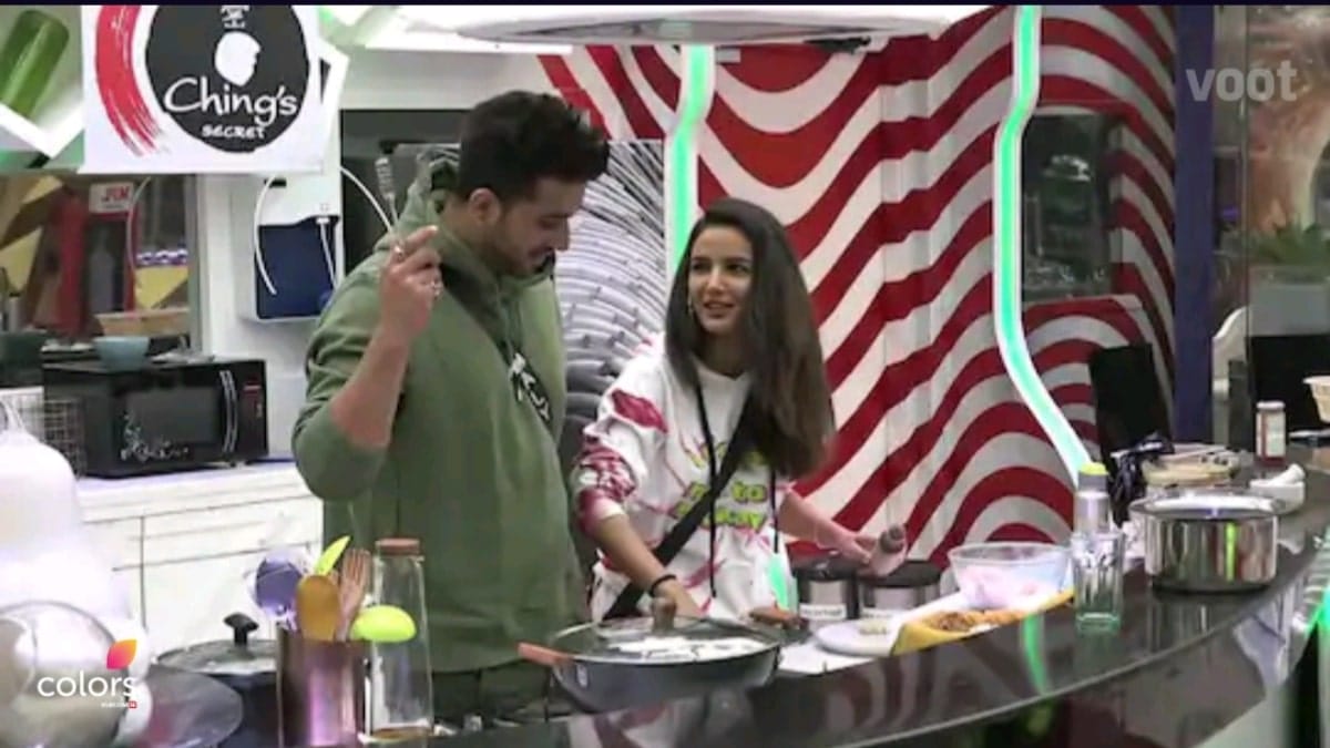 The clip starts with Jasmin cooking Phulkas and Aly Goni asks if he could help her but she refuses. Then Aly Goni started to make phulkas himself to help her but Jasmin forbids him to do it.