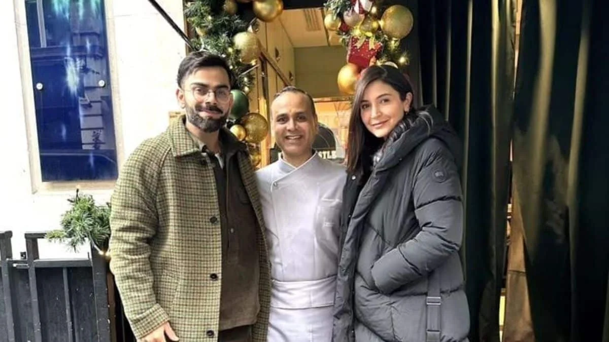 Anushka Sharma and Virat Kohli are one of the most adored couples. The power couple embarked on a leisurely retreat in London, accompanied by their darling daughter, Vamika. A new viral picture from their getaway captures the power couple posing outside their favorite restaurant. The picture captures the power couple posing outside a London restaurant alongside a chef. The cricketer looked dashing in a gray t-shirt, jeans, and a long winter coat, complemented by sneakers and round glasses. On the other hand, Anushka looked pretty in a puffy long jacket.