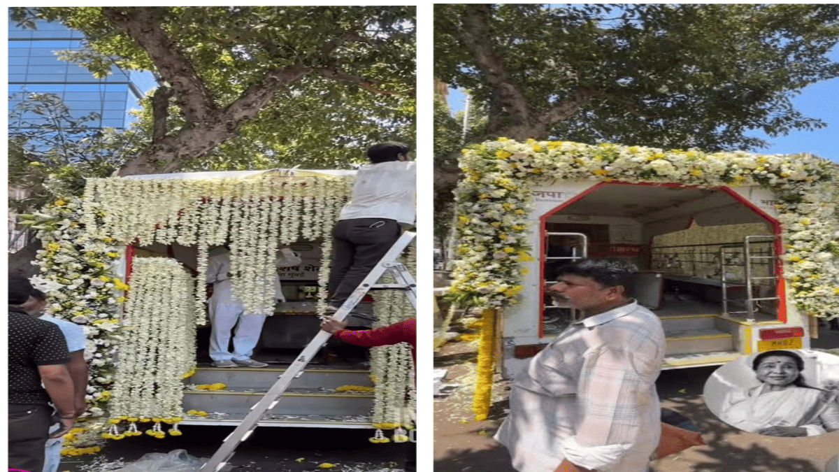 The short 10-second reel shows workers carefully decorating the vehicle with vibrant flowers 🌺 at the bustling Dadar market. Bright garlands and fresh blooms are being arranged with care and reverence, turning a simple conveyance into a moving tribute worthy of the melody queen. This floral decoration was part of the solemn arrangements ahead of the public viewing held at her Lower Parel residence, Casa Grande.
