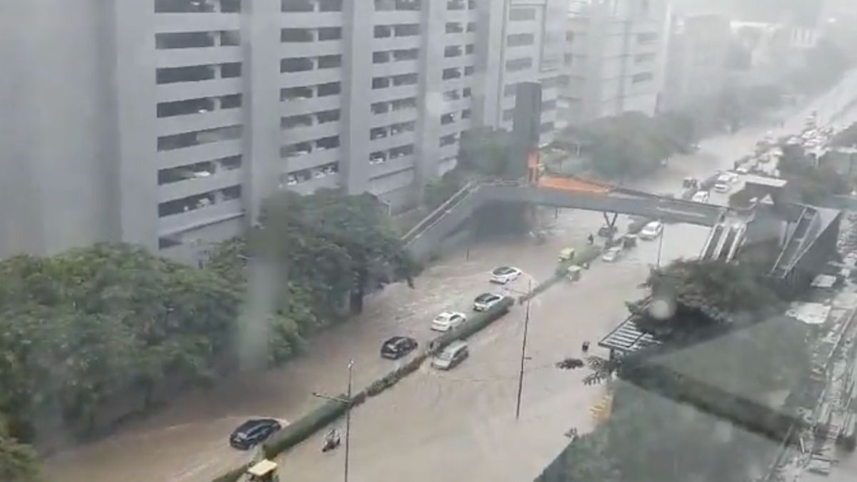 Bengaluru’s Manyata Tech Park, a key hub for technology companies, was left severely waterlogged on October 15 following heavy rains in the city. Videos circulating on social media showed flooded roads inside the tech park, located in Nagawara, causing disruptions for employees and residents alike.