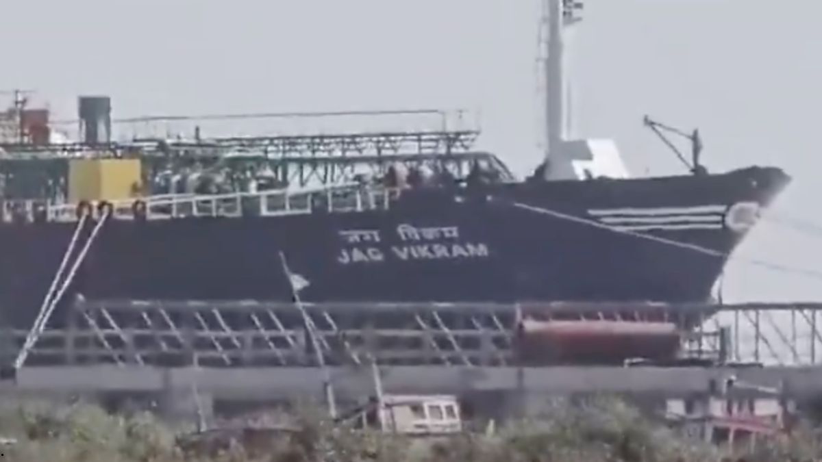 #WATCH | Gujarat: Indian flagged LPG vessel 'Jag Vikram', which crossed the Strait of Hormuz on April 11, reached Kandla Port on April 14. The vessel was carrying 20,400 metric tonnes of LPG. pic.twitter.com/7q2a7bcBHl