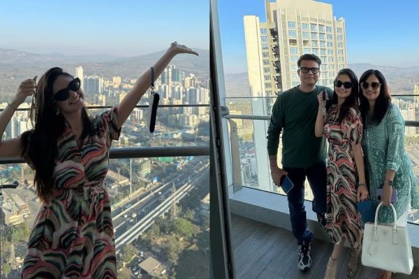 One of the photographs shows the Baal Veer actress posing with her parents on the balcony. Take a look at some more photos