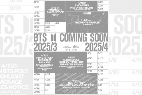 According to the announcement, BTS will first release "7 Moments" with pre-orders beginning on March 19, 2025, at 11 AM KST, followed by the official release on April 2, 2025.