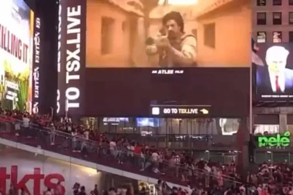 Massive crowd gathers as Shah Rukh Khan’s ‘Jawan’ trailer features on Times Square in NYC – WATCH