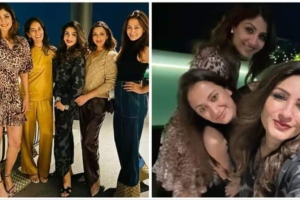 'For a nice evening', Sonali Bendre, Shilpa Shetty, and Raveena Tandon got together at Gayatri Joshi's new house and posed for pictures. See their photos.