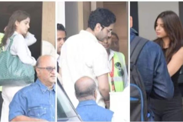 Suhana Khan, Agastya Nanda, and Navya Naveli Nanda are seen at the airport as they depart for their New Year’s trip