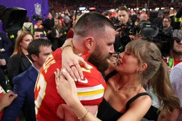WATCH: Taylor Swift kisses boyfriend Travis Kelce at Super Bowl 2024