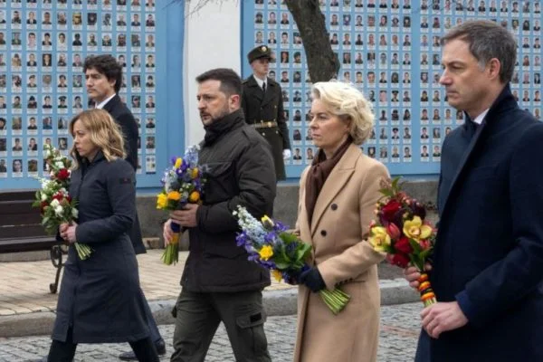 Western leaders, including Ursula von der Leyen and Justin Trudeau, visited Kyiv to show solidarity with Ukraine as it marks the third year of conflict with Russia.