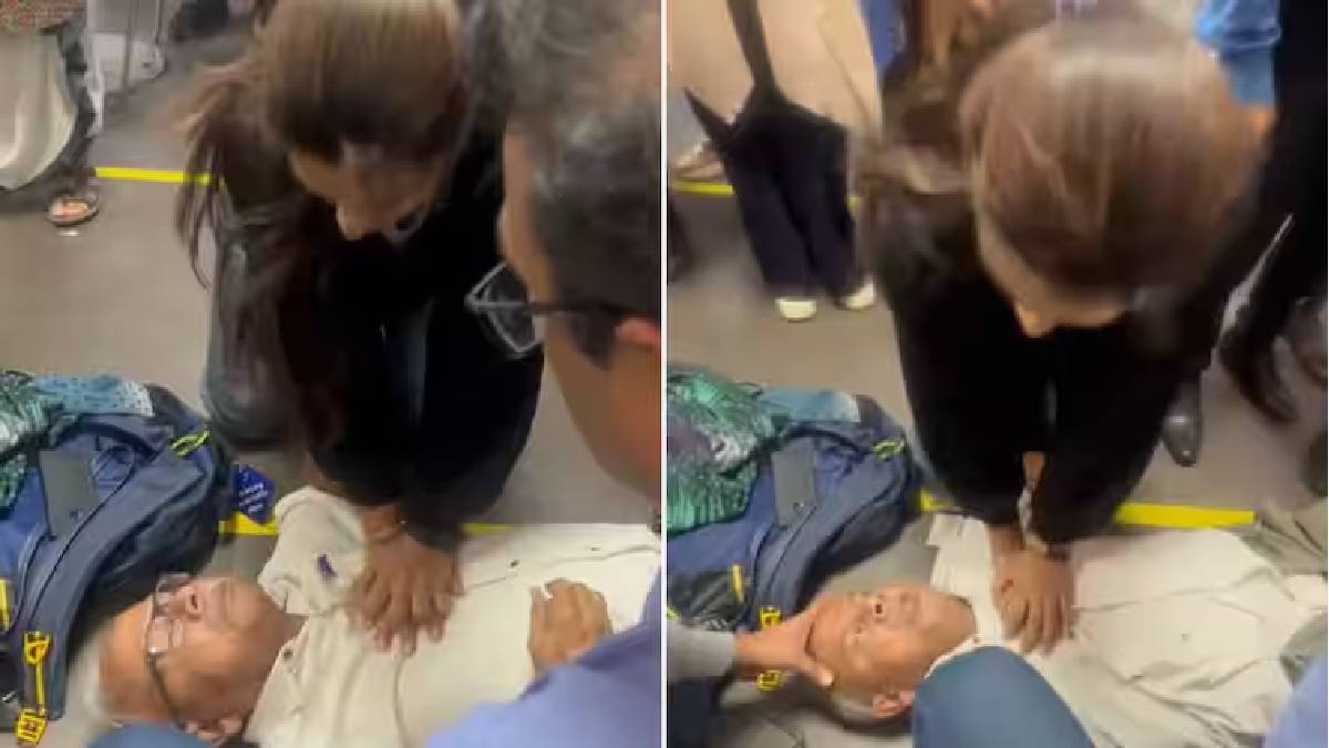 A doctor’s prompt response saved a life of an elderly man at Delhi airport who suffered a cardiac arrest. The incident took place at Terminal 2 of the airport and was recorded by an onlooker and is going viral on the internet.