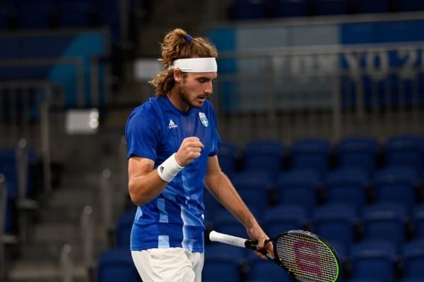 Under the centre court cover at Ariake Tennis Park, the Greek third seed defeated American Tiafoe 6-3, 6-4.