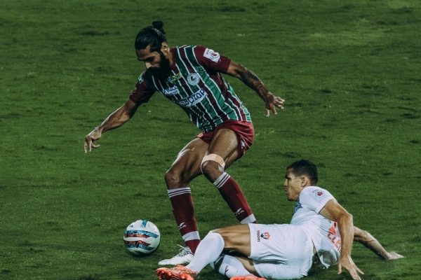 During an ISL match between Kerala Blasters and Hyderabad FC, Khabra was held liable for "hitting a rival when not challenging for the ball."