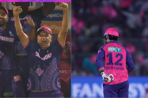 RR vs GT: Injured RR coach Rahul Dravid gets off his wheelchair to cheer for Vaibhav Suryavanshi’s maiden century