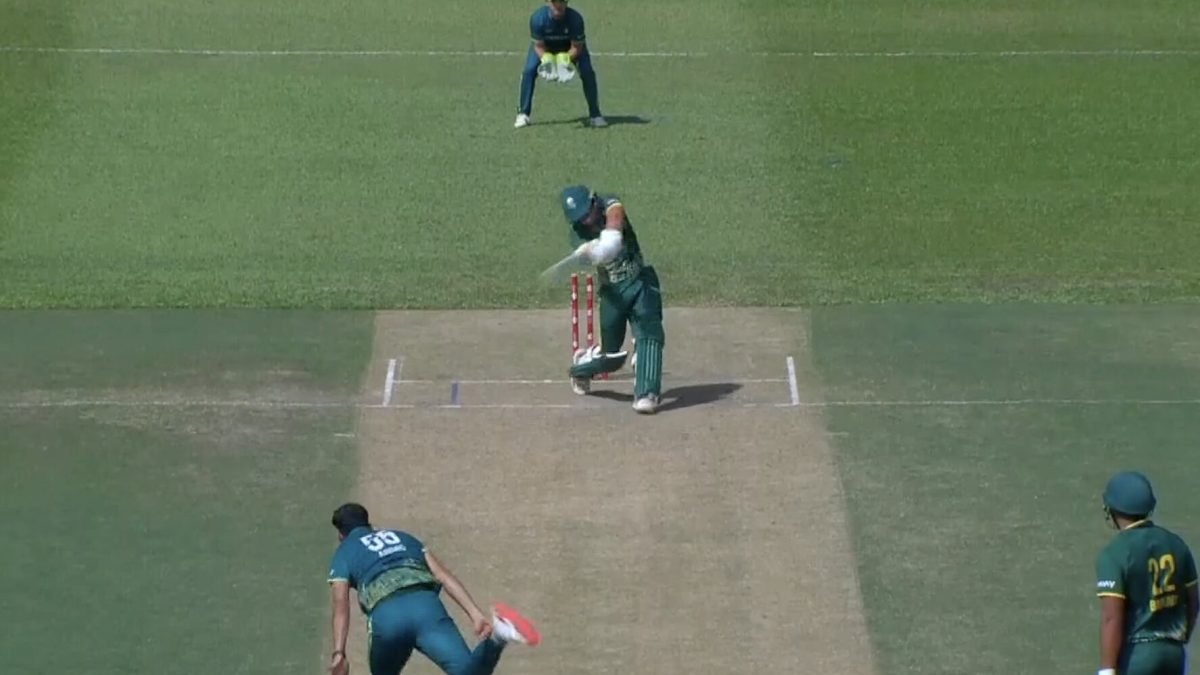 After Pakistan won the toss and opted to field, South Africa’s openers Jorich Van Schalkwyk and Abdullah Bayoumy came out blazing. Van Schalkwyk, in particular, turned the heat on Afridi — hammering him for 26 runs in an over with four sixes in a row, all aimed over the mid-wicket boundary.
