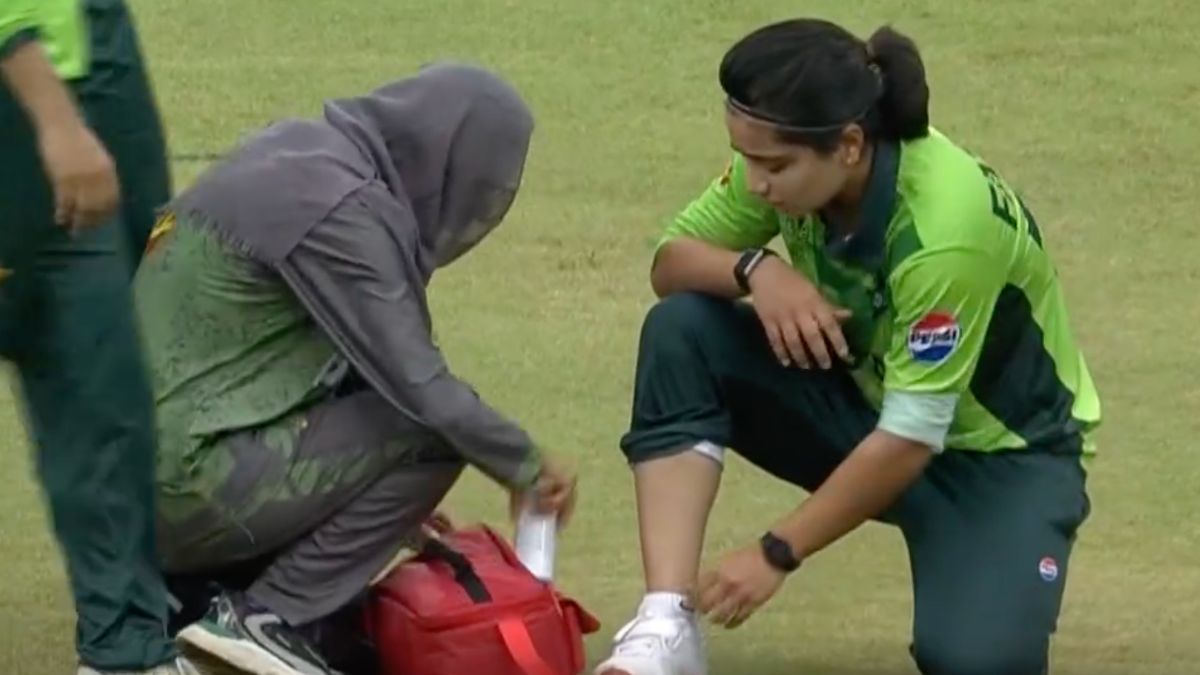 As per visuals from the field, Sana was seen testing her ankle’s movement, and after a short break, confirmed she was fit to continue bowling.