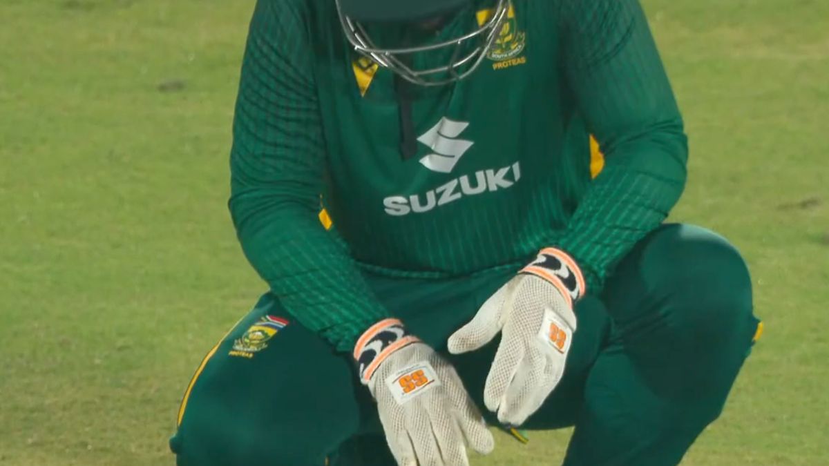 A worrying moment unfolded in the 32nd over of India’s chase during the 3rd ODI in Visakhapatnam, when South Africa wicketkeeper Quinton de Kock was struck painfully on his right hand, forcing an immediate halt in play.