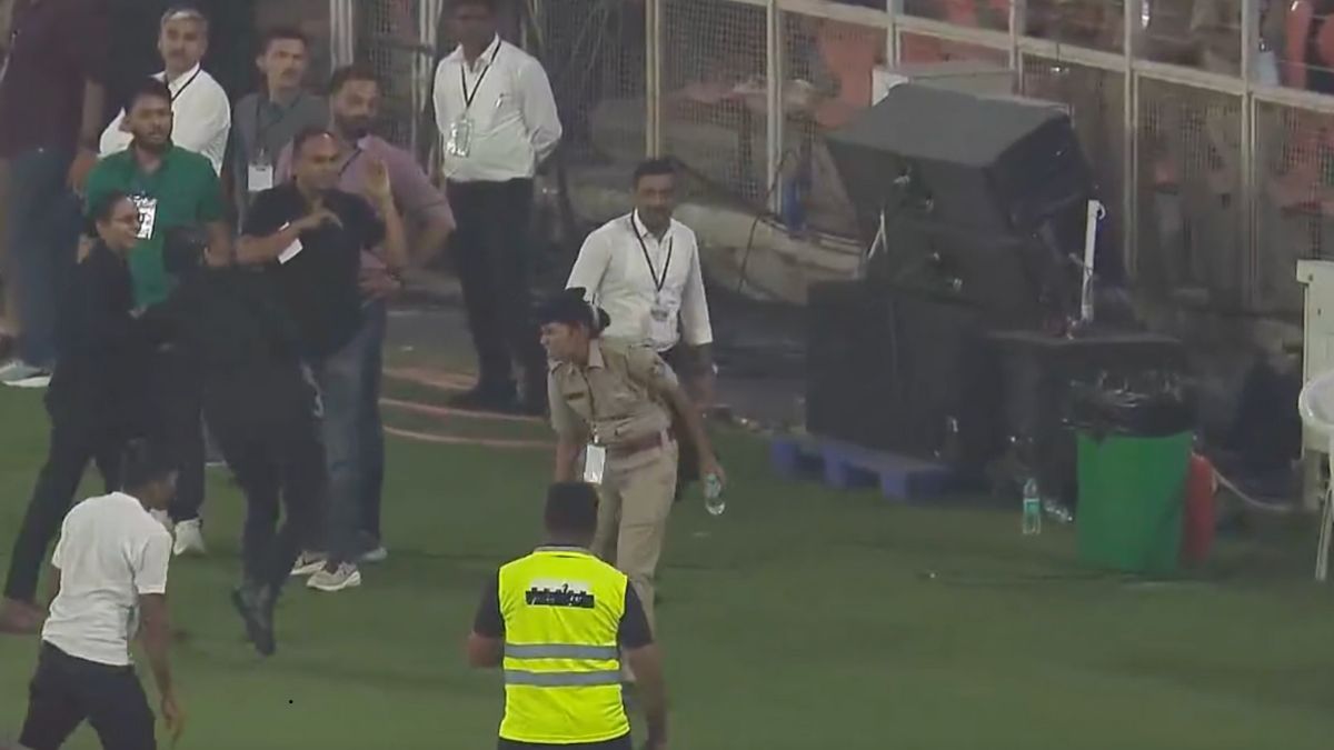 In an unusual and unfortunate moment during the Gujarat Titans vs Punjab Kings match at the Narendra Modi Stadium, a senior policewoman patrolling near the boundary line was struck by a powerful six hit by Marcus Stoinis. The incident occurred during Mohammed Siraj’s over when Stoinis muscled a length delivery over deep mid-wicket for a flat six.
