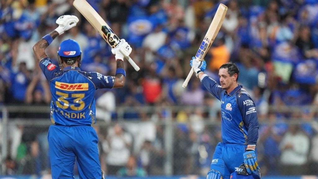 Mumbai Indians Playing XI: Danish Malewar, Quinton de Kock (wk), Naman Dhir, Suryakumar Yadav, Hardik Pandya (c), Tilak Varma, Sherfane Rutherford, Mitchell Santner, Krish Bhagat, Jasprit Bumrah, Allah Mohammad Ghazanfar