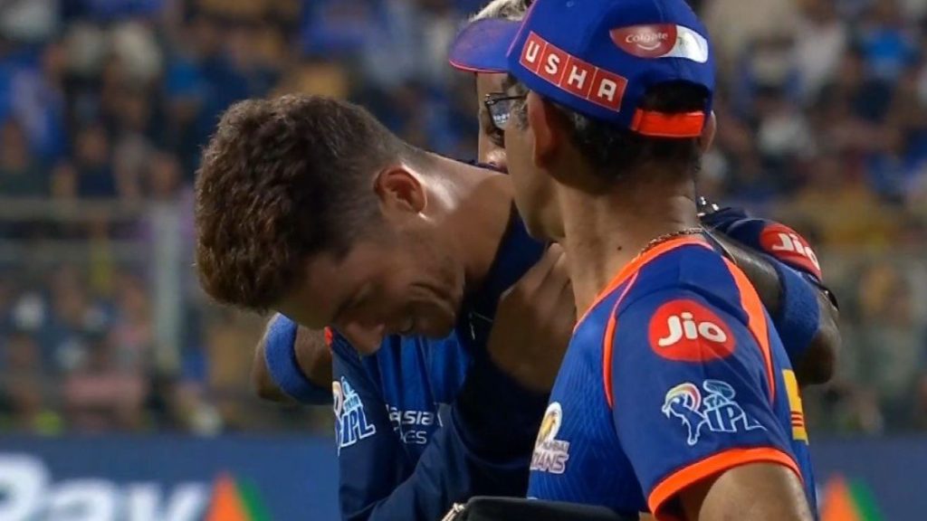 Quinton de Kock fell early, followed by Naman Dhir and Hardik Pandya. Suryakumar Yadav and Tilak Varma tried to rebuild with a 73-run stand, but the required rate kept climbing.