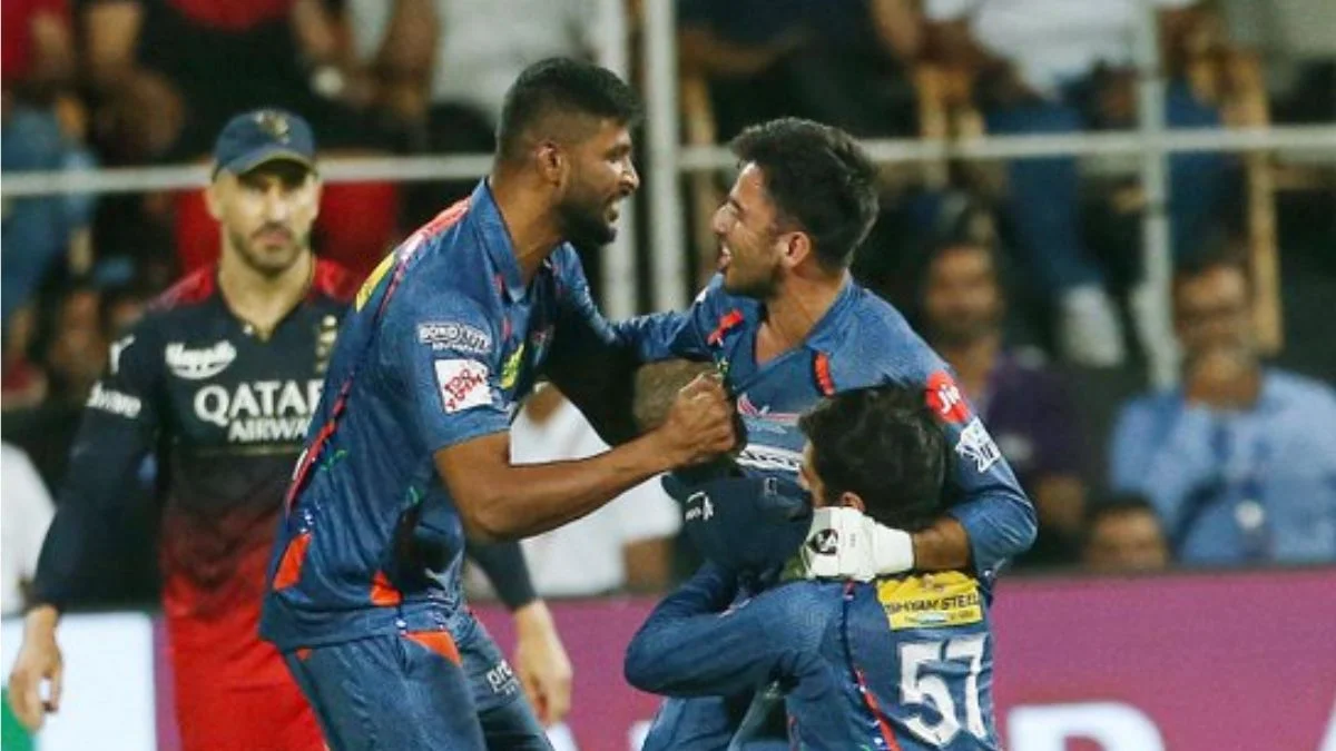 The RCB vs LSG game at M Chinnaswamy Stadium was a dramatic match in IPL history, breaking multiple records and having a change of momentum in every delivery. LSG chose to bowl first, and despite Virat Kohli’s quick 50-run stand, he was eventually dismissed by Amit Mishra. Faf du Plessis smashed the longest six of IPL 2023, and along with Glenn Maxwell, attacked the leg-spin bowlers, setting a massive target of 213 runs for LSG. LSG lost three wickets in the powerplay, but Marcus Stoinis and later Ayush Badoni and Nicholas Pooran led a counter-attack, bringing the game back to a close finish. The game’s momentum shifted when Harshal Patel took two wickets in the final over, but LSG ultimately won with a quick single after a ‘Mankad-miss’ moment.
