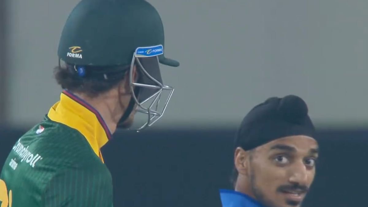 A brief moment of on-field banter lit up the India vs South Africa 1st ODI after Marco Jansen hammered Arshdeep Singh for a scorching boundary. As Jansen smashed a low full-toss through the off-side for four in the 26th over, cameras caught the tall Proteas all-rounder and the Indian pacer exchanging a few words and a smile right after the shot.