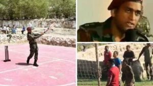 Dhoni interacted with armed forces people, played cricket and volleyball with Territorial Army battalion.