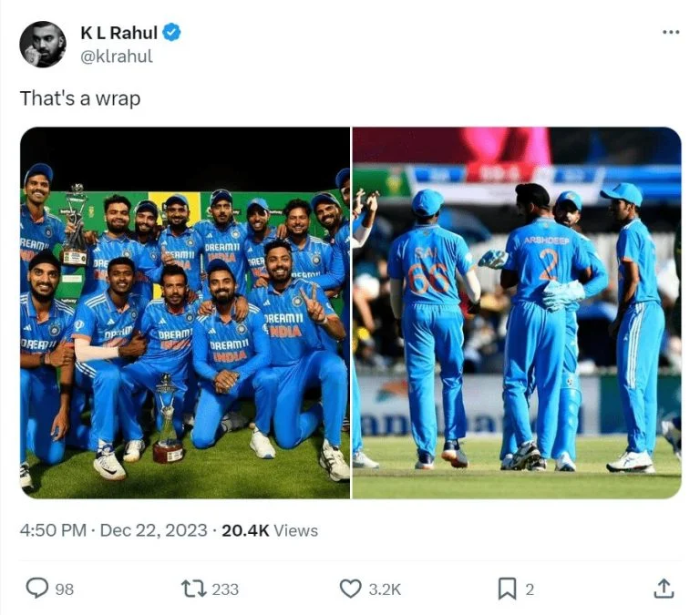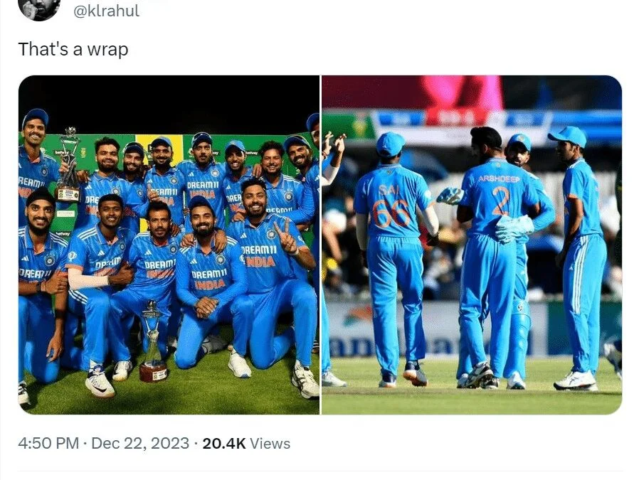 The interim skipper for the South Africa ODI series, KL Rahul posted on his twitter after a successful series win against South Africa. India defeated South Africa by 78 runs to seal the ODI series by 2-1. India who didn’t kept a huge target was backed by their bowlers to help them stand victorious to which Rahul made a sweet & crip tweet saying ‘That’s a Warp”.