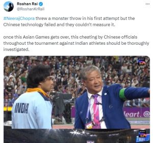 The Asian Games 2023 made many Indian fans react, calling them cheaters and discriminating against India. Well, Indian fans reacted after the Chinese official couldn’t measure Neeraj Chopra’s monstrous throw in the first attempt, saying they faced some technical issues.