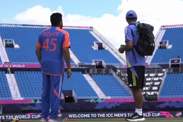 Rohit Sharma and Rahul Dravid visit for ground inspection ahead of T20 World Cup Cricket · May 31, 2024