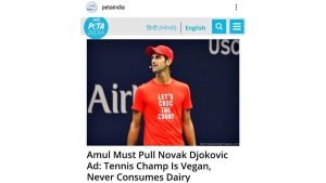 PETA India has sent a letter to Amul demanding, to remove the advertisement showcasing French Open 2020 champion Novak Djokovic as he is vegan & does not consume dairy products.