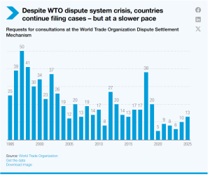 The WTO’s dispute mechanism, launched in 1995, has handled 644 cases with 378 panels formed, enabling smaller players to enforce rules against larger foes. But Appellate Body gridlock—due to blocked judge appointments—has slashed new consultations from 19 yearly (2010-2019) to 8.5 (2020-2025), eroding binding commitments. Reviving this system is crucial for equitable defense of trade rights, particularly for vulnerable exporters facing discriminatory hikes.