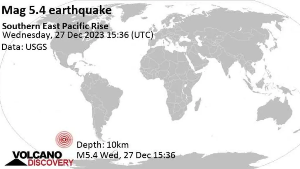 An earthquake with a magnitude of 5.5 jolted the Southern East Pacific Rise at 2133 GMT on Wednesday, the GFZ German Research Centre for Geosciences said.