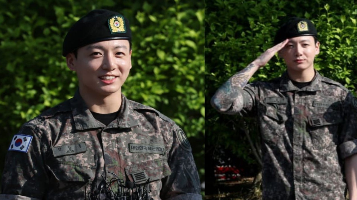 The photos were reportedly taken during Jungkook’s time in the military and featured him alongside a fellow soldier in a gym setting. In one mirror selfie, Jungkook had his face partially covered with a beanie, casually posing like a typical gym-goer. In another, his full face was visible as he flashed a peace sign and subtly showed off the results of his training. The military friend who posted the images shared a heartfelt caption, saying, “What’s a week? It’s been a whole year. Thanks to you, my military life was enjoyable. I’ll cheer you on from afar.” It was clear the post was meant to celebrate their bond, while also revealing just how committed Jungkook was to fitness during his service.