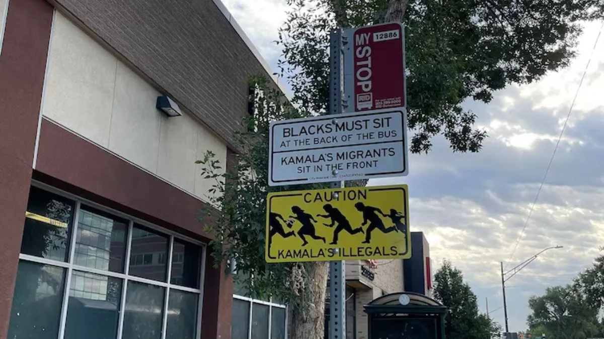 In a disturbing incident, signs displaying “hateful, discriminatory” messages referencing Democratic presidential nominee Kamala Harris were found posted at several bus stops around Denver, Colorado, overnight Thursday. The Regional Transportation District (RTD) reported that the signs, which contained offensive content, were affixed to bus stop poles with rivets and may have been installed shortly before they were discovered.
