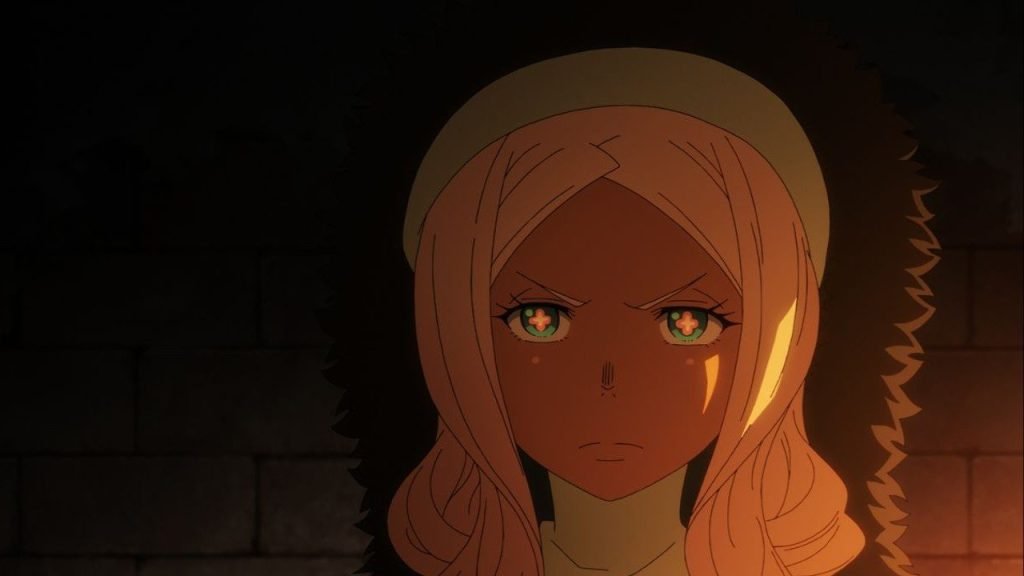 The aftermath is swift and severe: Company 8 is excommunicated and falsely accused of causing Captain Burns’s death. This political fallout isolates them from official support, even as the world spirals further into chaos. In the ruins of St. Raffles Convent, Hibana leads an investigation alongside Karim and Huo Yan. There, she uncovers a hidden room containing disturbing evidence that the convent was used to experiment on orphans by feeding them Infernal Bugs. This revelation casts a dark shadow over the Church’s involvement in the tragedy.