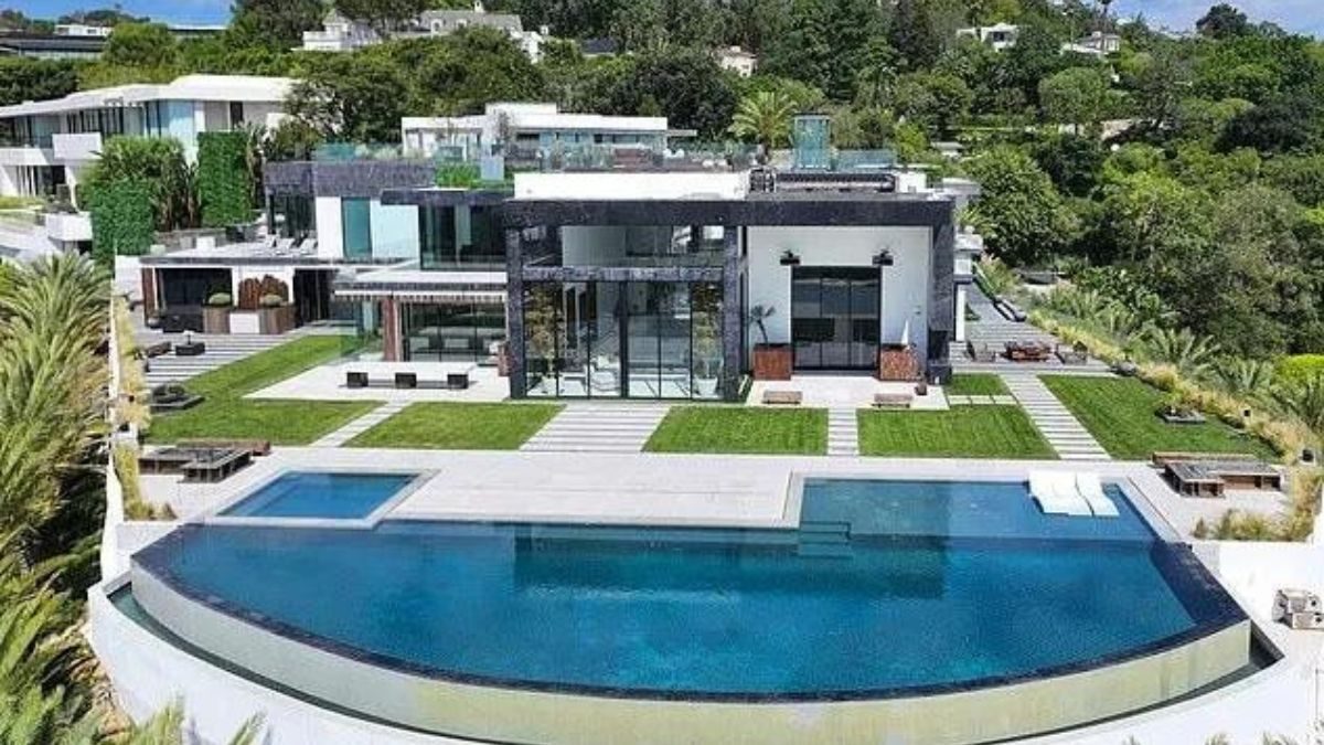 Among its standout features are a 12-seat theater, a miniature golf course, and a heated in-ground pool, all designed to provide ample entertainment options. The mansion also includes a car collector’s office with a glass wall and an elevator for added convenience.