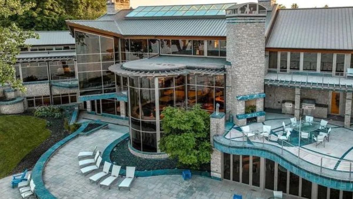 The grand estate, known as Peace Harbor, is situated on a prime location along West Lake Okoboji in Spirit Lake. Spanning nearly 25,000 square feet, the property boasts 52 rooms, including eight bedrooms and 15 bathrooms. It was originally constructed by Tom Bedell, the former CEO of Pure Fishing, who owned the home for over two decades.