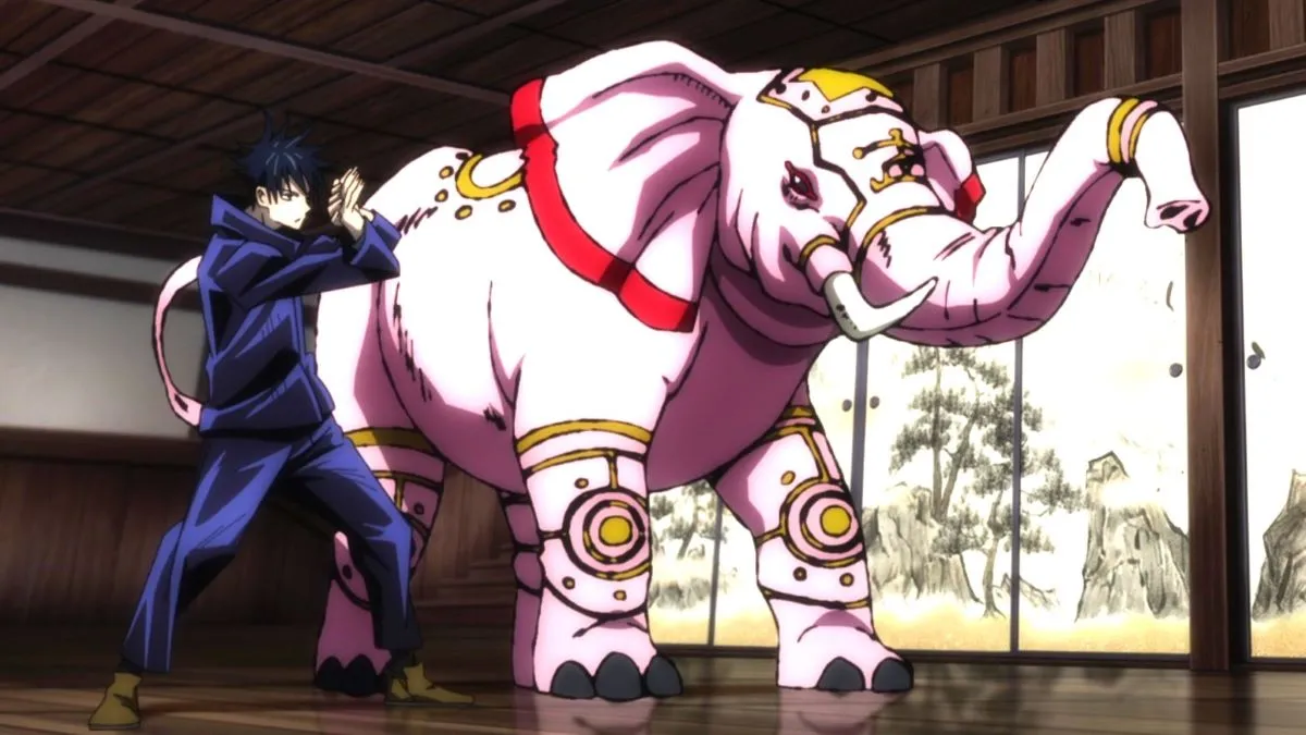 Max Elephant: Distinguished by its immense size, Max Elephant tramples enemies and floods rooms by spraying copious amounts of water from its trunk. Megumi notes the substantial cursed energy required to summon this shikigami.