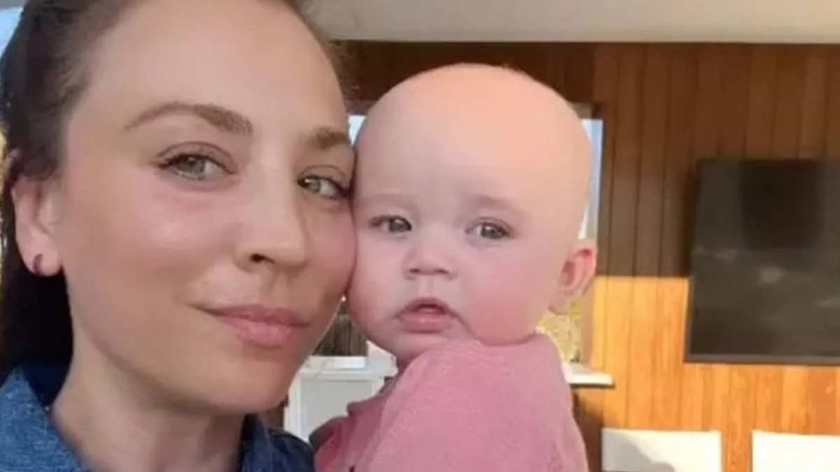 Kaley wore a bright blue tee and a clear framed glasses, while baby Matilda was all smiles in a multi – coloured onesies.