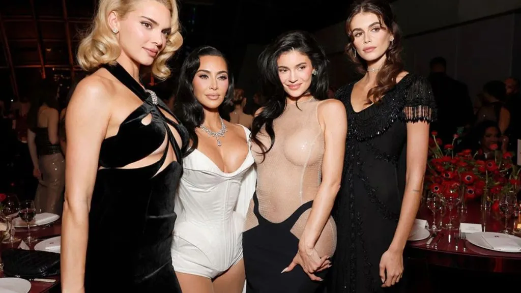 Joining Kim at the gala were her sisters, Kendall and Kylie Jenner. Following Kim’s fashion lead, Kylie opted for a fitted Mugler dress that combined a nude slip dress layered beneath a chic black skirt, creating a sophisticated yet playful look. Kendall wowed the crowd in a stunning Schiaparelli gown, accentuating her newly blonde bob hairstyle, further emphasizing the sisterly bond and style connection among the trio.