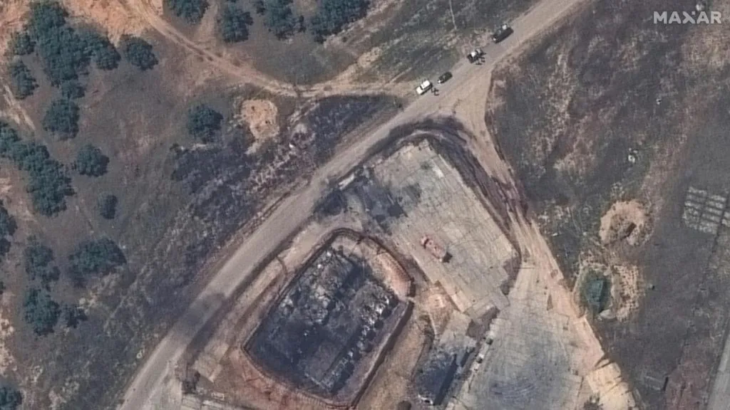 Mikhail Razvozhayev, the governor of Sevastopol, which is the main base for Russia’s Black Sea Fleet, said the drone attack damaged the city’s power plant. He said it could take a day to fully restore energy supplies and warned residents that power would be cut to parts of the city. “Communal services are doing their best to restore the power system as quickly as possible,” he said in a statement. Razvozhayev also announced that schools in the city would be closed temporarily. Earlier Ukrainian attacks damaged aircraft and a fuel storage facility at Belbek air base near Sevastopol, according to satellite images released by Maxar Technologies.