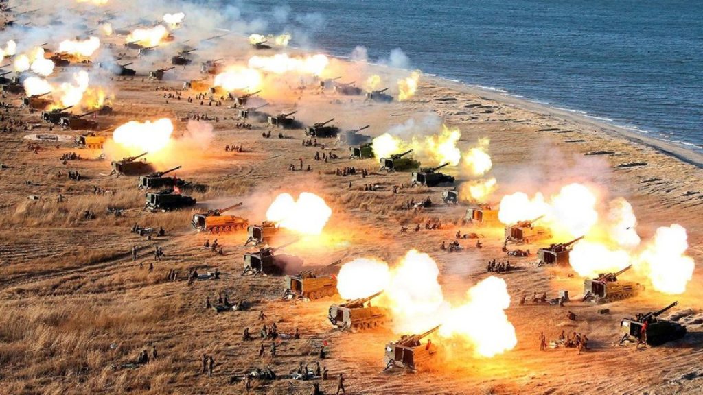 South Korea says North Korea has conducted artillery drills along the rivals’ tense sea boundary in violation of a 2018 military agreement. South Korea’s Joint Chiefs of Staff says North Korea fired 200 rounds in the waters north of their disputed western sea boundary on Friday.