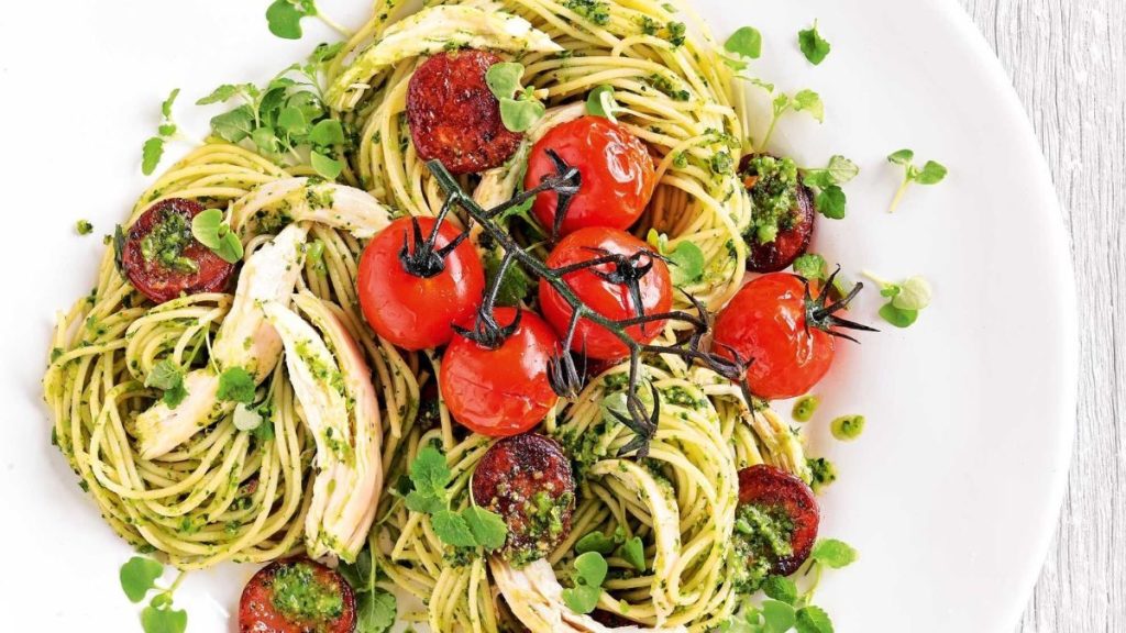 - Toss the pasta in a vibrant basil pesto, creating a green goddess coating.
