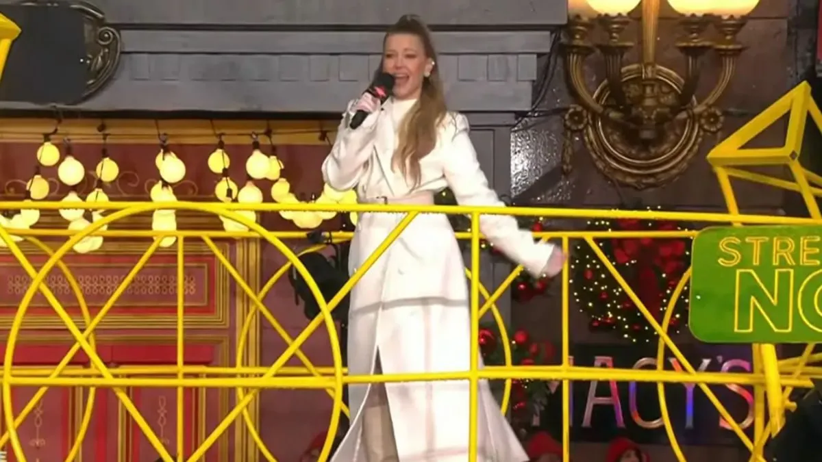 Dressed in an elegant all-white ensemble, Madix exudes sophistication, pairing the look with diamond earrings and sheer gloves. Her sleek half-up, half-down hairstyle added to the polished aesthetic, making her a standout among the day’s performers. Madix’s performance was met with cheers as she seamlessly transitioned from reality TV star to music and dance performer, solidifying her presence on the iconic holiday stage.
