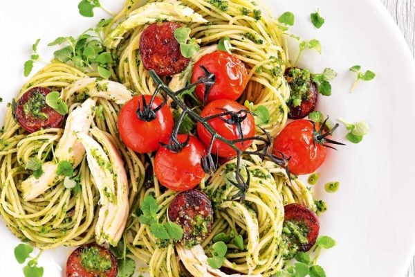 Pesto Pasta with Cherry Tomatoes: A Green Goddess Delight