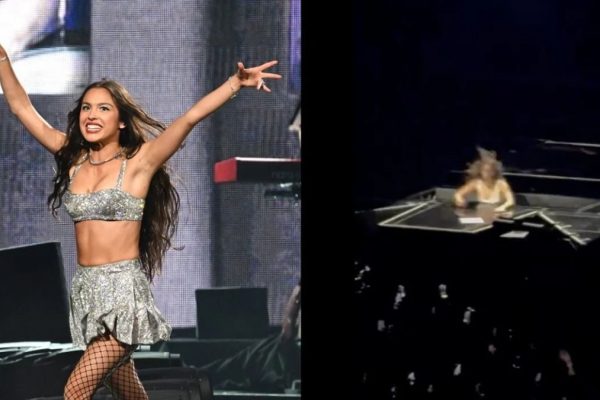 What happened when Olivia Rodrigo fell through a hole on stage?